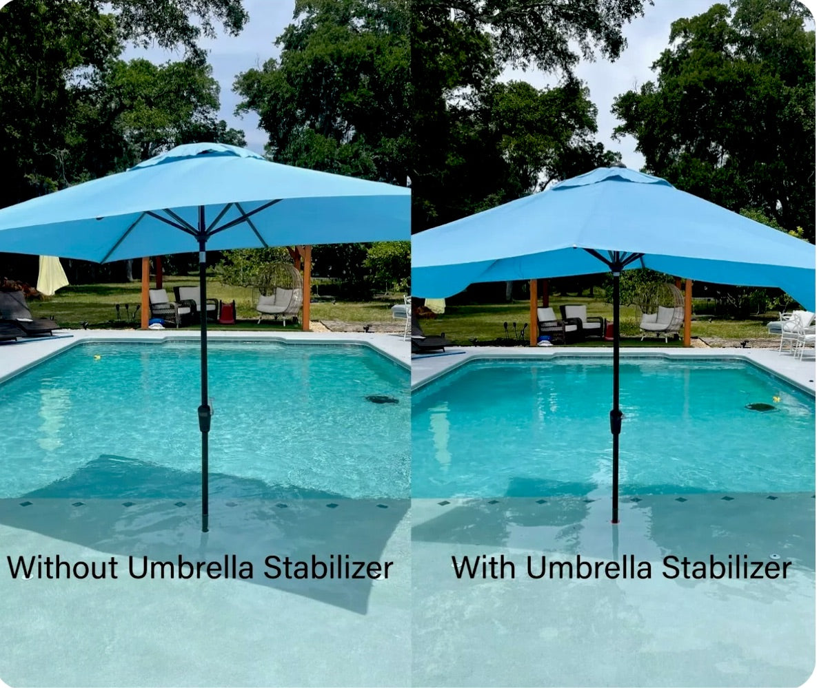 No more leaning pool umbrellas! Your fix is here! The LeBrella stabilizer levels up your tilting umbrella and works with 1-1/2" threaded umbrella sleeves.
